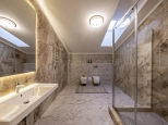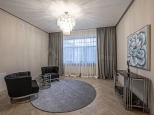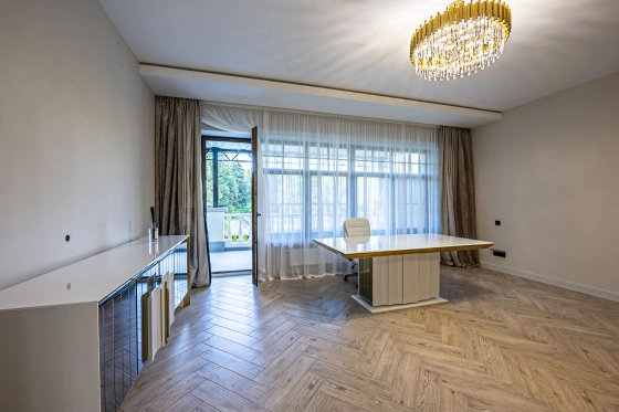Поднимаясь по лестнице на 1 пролет Вы попадаете в зону отдыха, где расположены полностью меблированная спальня со своим санузлом и гардеробной комнатой, кабинет со своим санузлом.