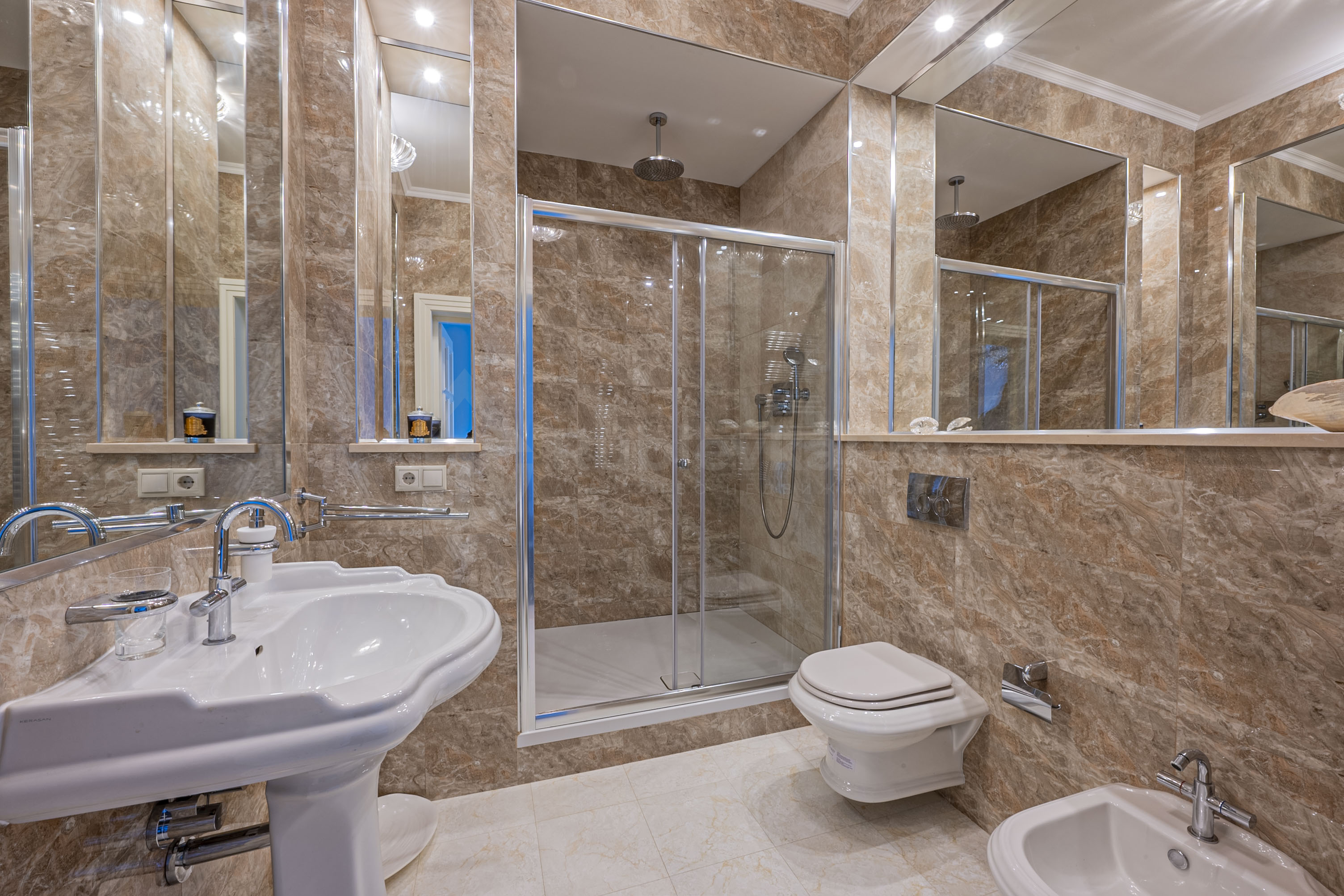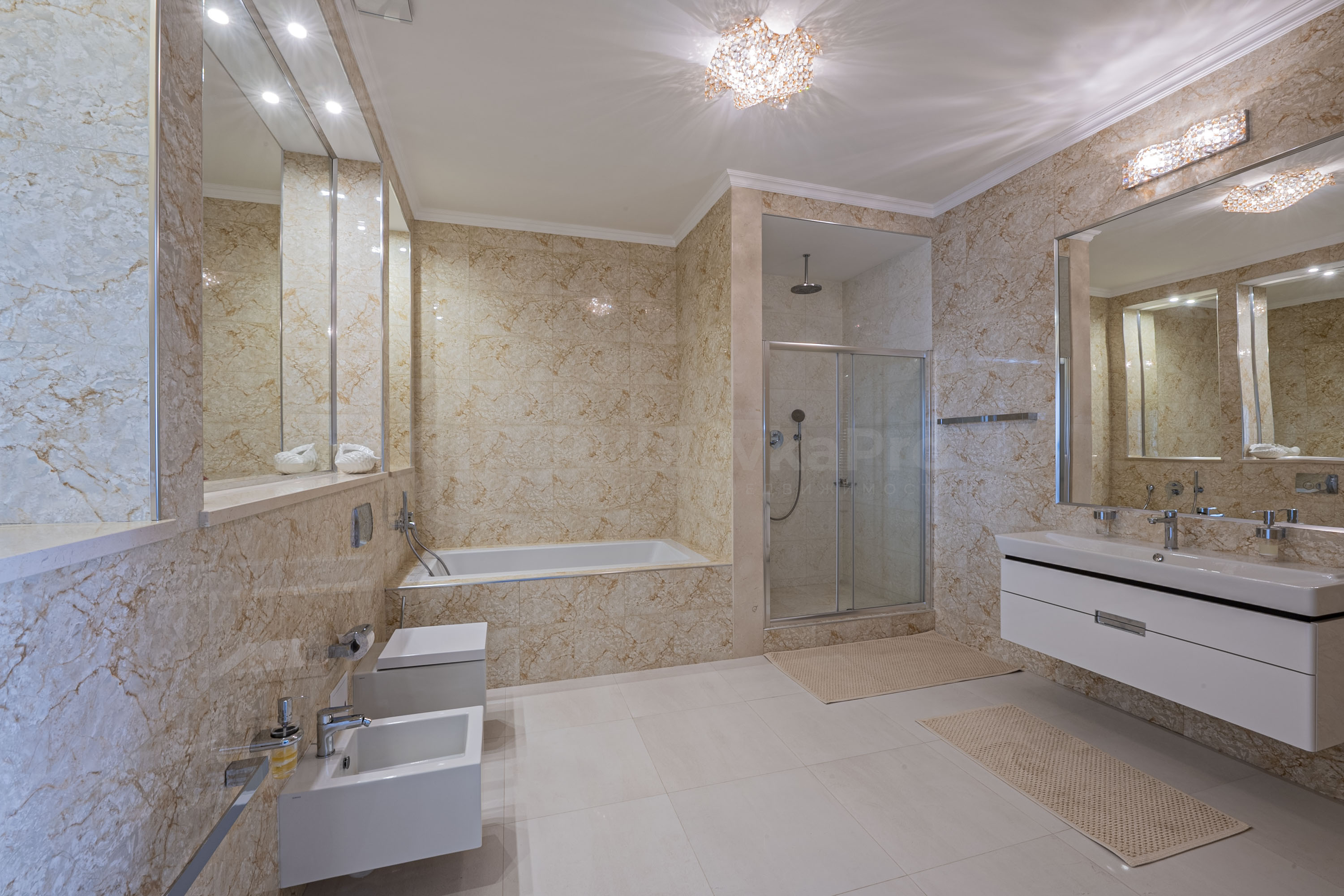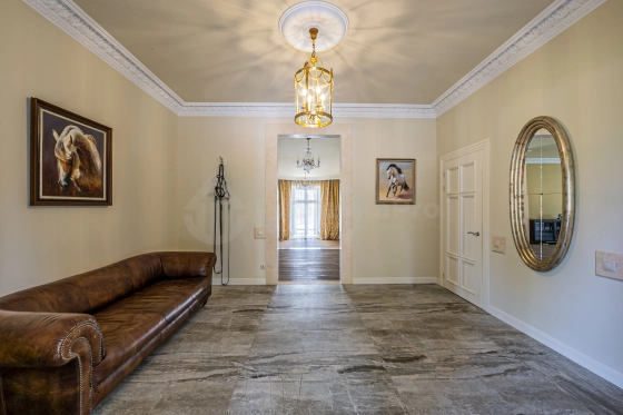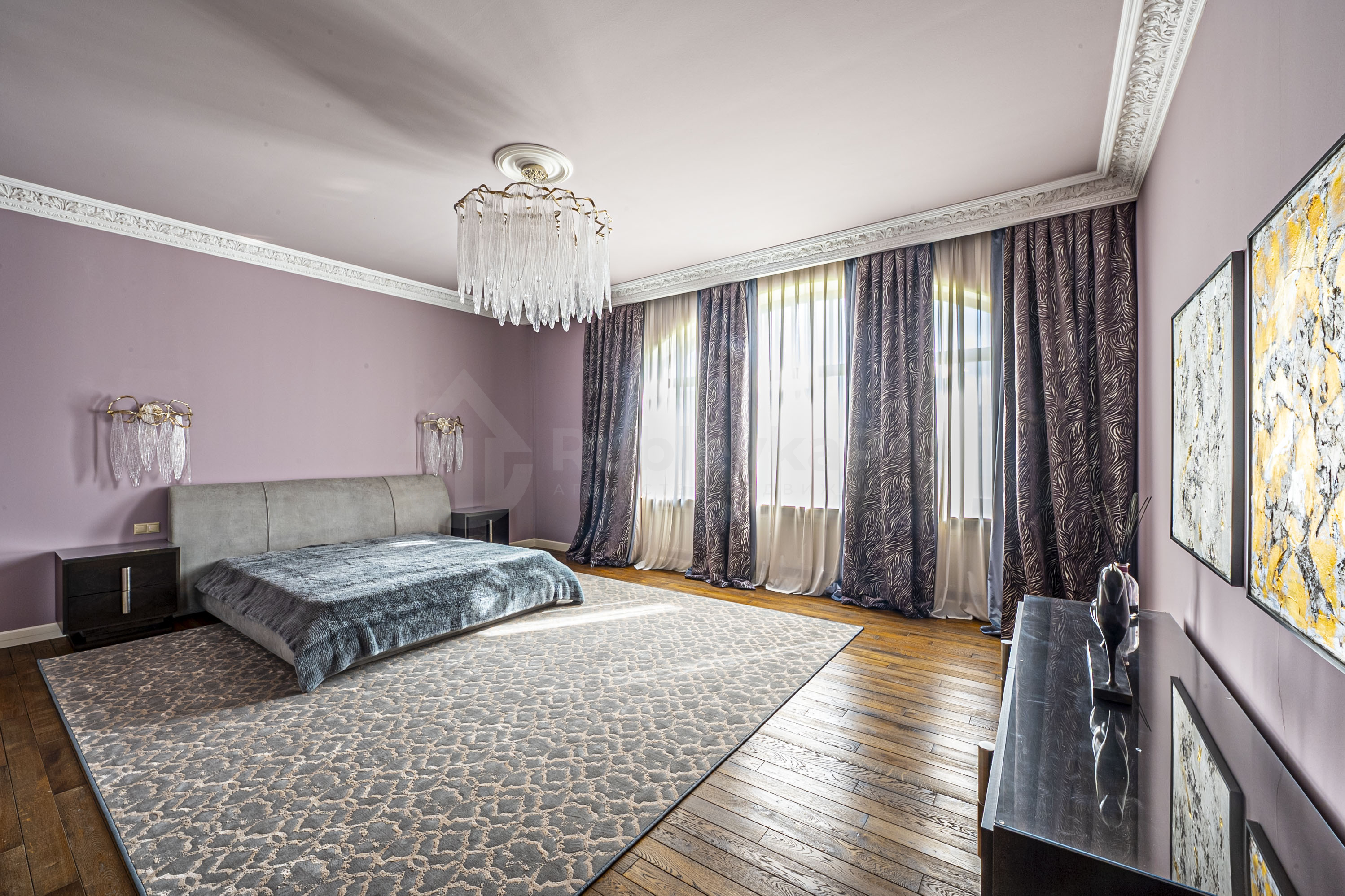 В доме пять спальных комнат, со своими санузлами и гардеробными комнатами, с мебелью и необходимой техникой.