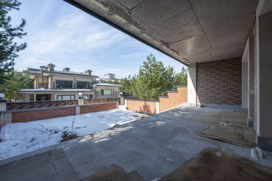 На собственном участке площадью 12 соток растут вековые сосны высотой до 10 метров и обустроена зона патио для отдыха.