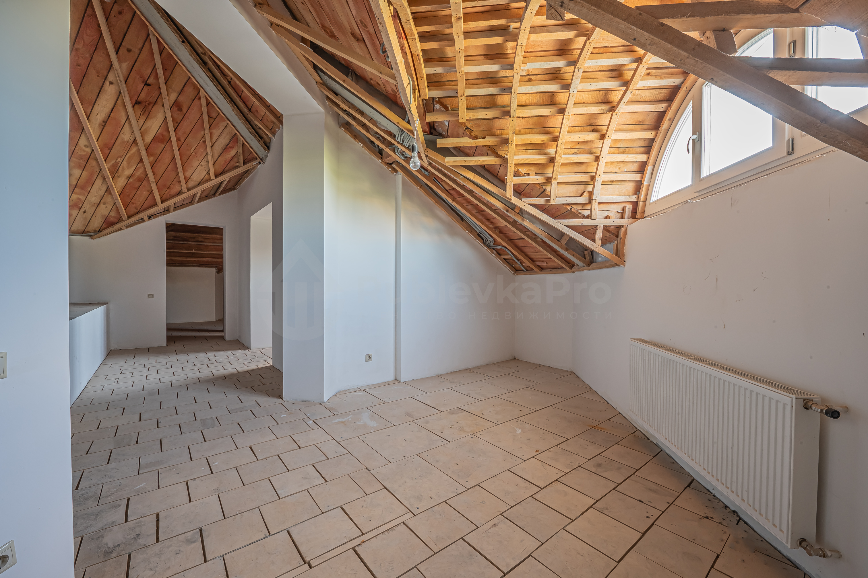 На втором этаже расположены три спальни, каждая со своим санузлом, гардеробными, есть сауной, кабинет, на 3 этаже две спальни со своими санузлами. На мансардном этаже расположено помещение свободного назначения, где можно сделать игровую или театральную зону, а также разместить еще одну спальню.