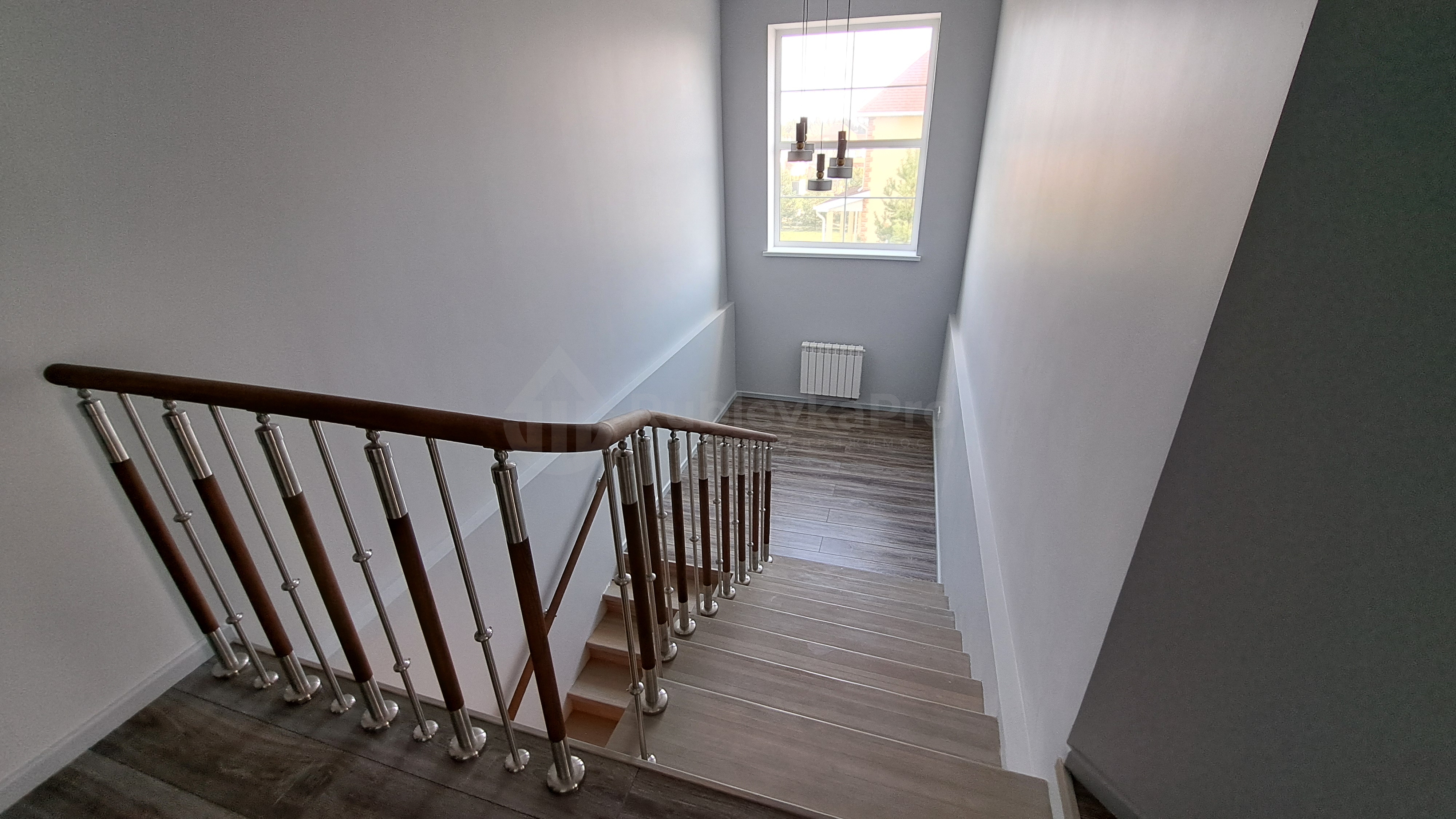 На втором этаже мастер-спальня со своим санузлом, гардеробной и выходом на просторный балкон, 2 спальни, санузел, холл с выходом на второй балкон, постирочная.
