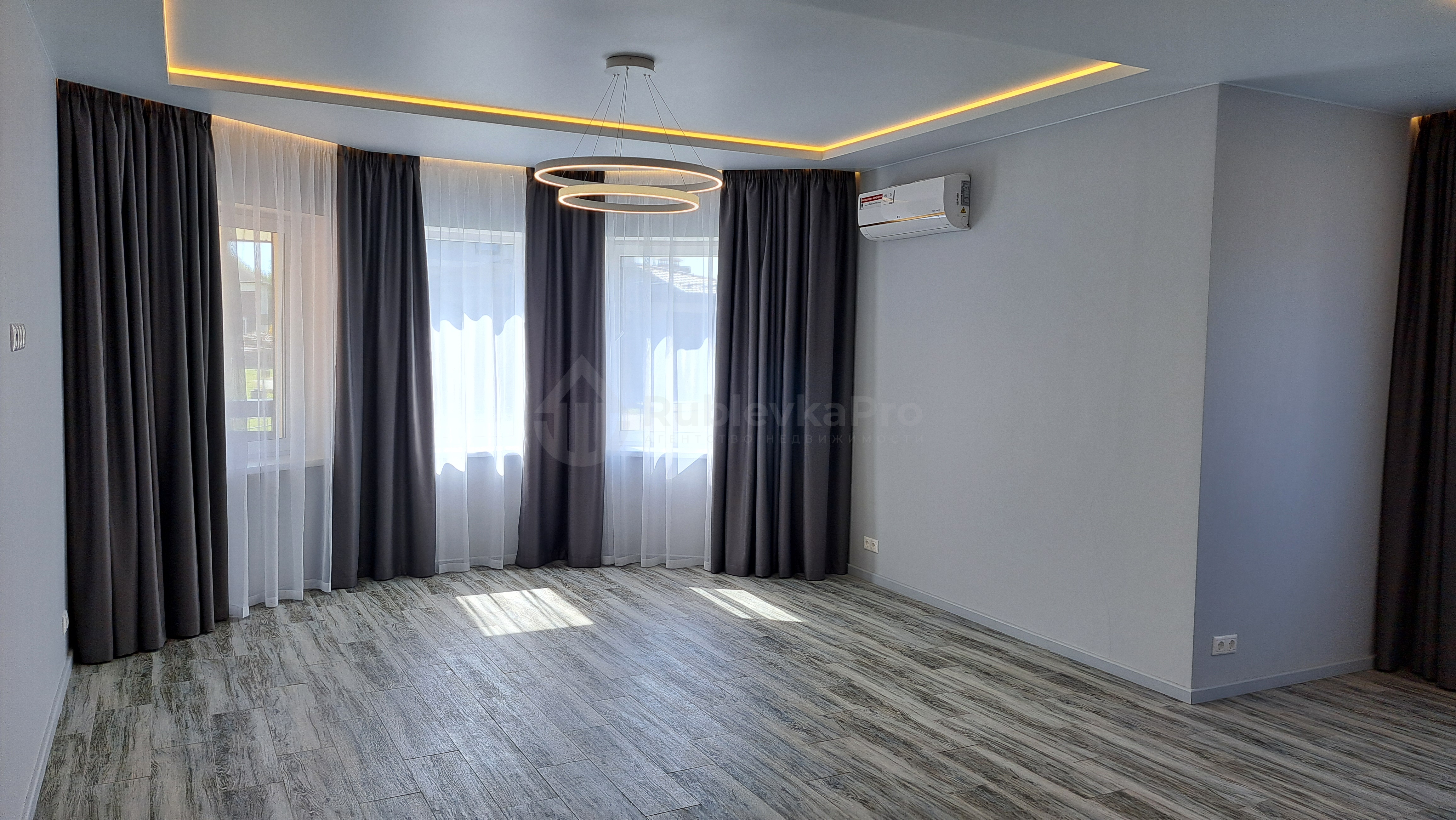 Теплый пол на 1 этаже и санузлах. Кухня и бойлерная оборудованы всей необходимой техникой, во всех комнатах установлена системы кондиционирования, бойлерная оборудована системой Умный дом.Гараж оборудован секционными металлическими воротами.