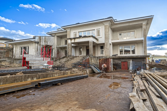 Планировка: первый этаж просторная кухня гостиная столовая, гардеробная комната, второй этаж возможно оборудовать 4-5 спальни со своими санузлами и гардеробными комнатами , цокольный этаж, гараж, гостевой санузел, технические помещения (кладовые, постирочная, комнаты персонала.