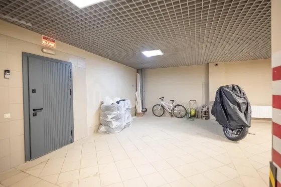 Машино-место на один автомобиль в теплом подземном паркинге идет в комплекте к таунхаусу. Располагается рядом со входом в таунхаус.
