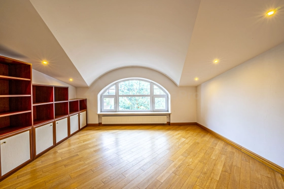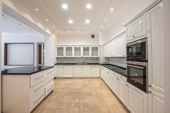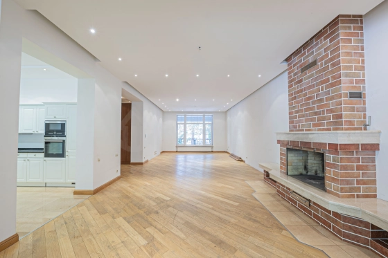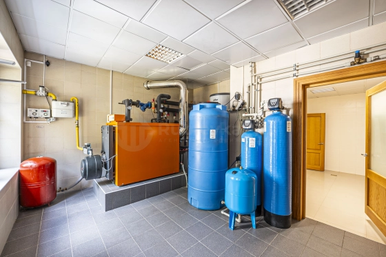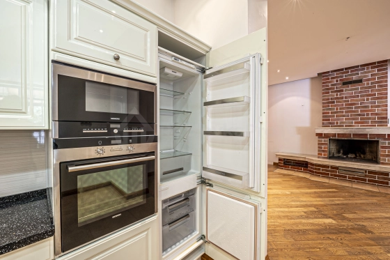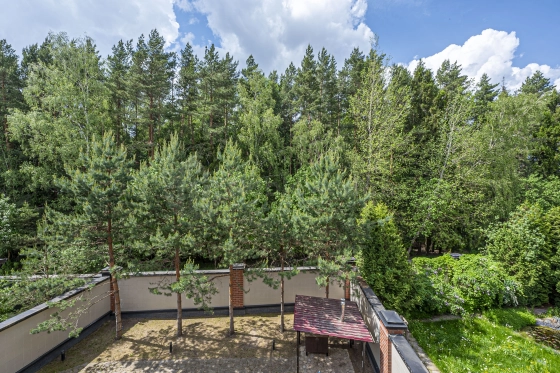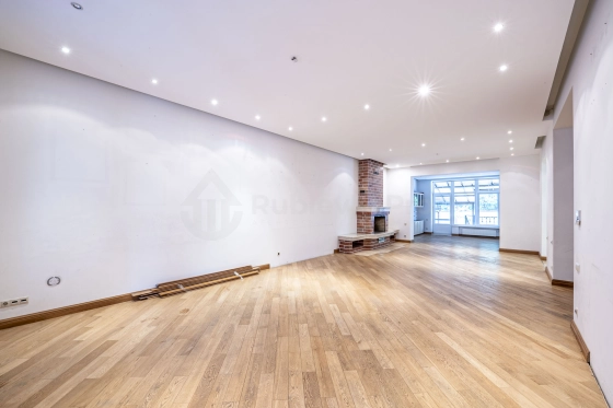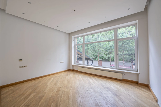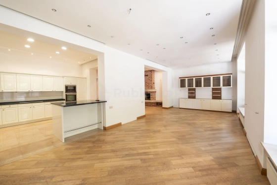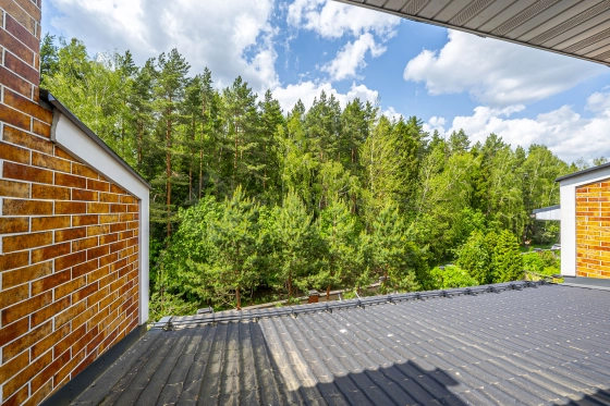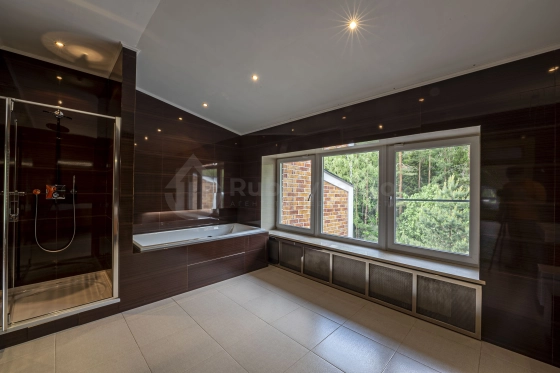 Сердце дома — великолепная кухня-гостиная с роскошным дровяным камином, где собираются семьи и друзья для теплых вечеров. Панорамные окна открывают захватывающий вид на лесной массив, создавая неповторимую атмосферу единения с природой.