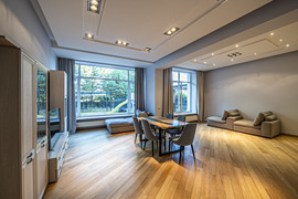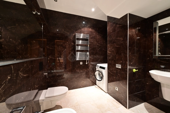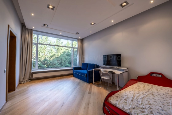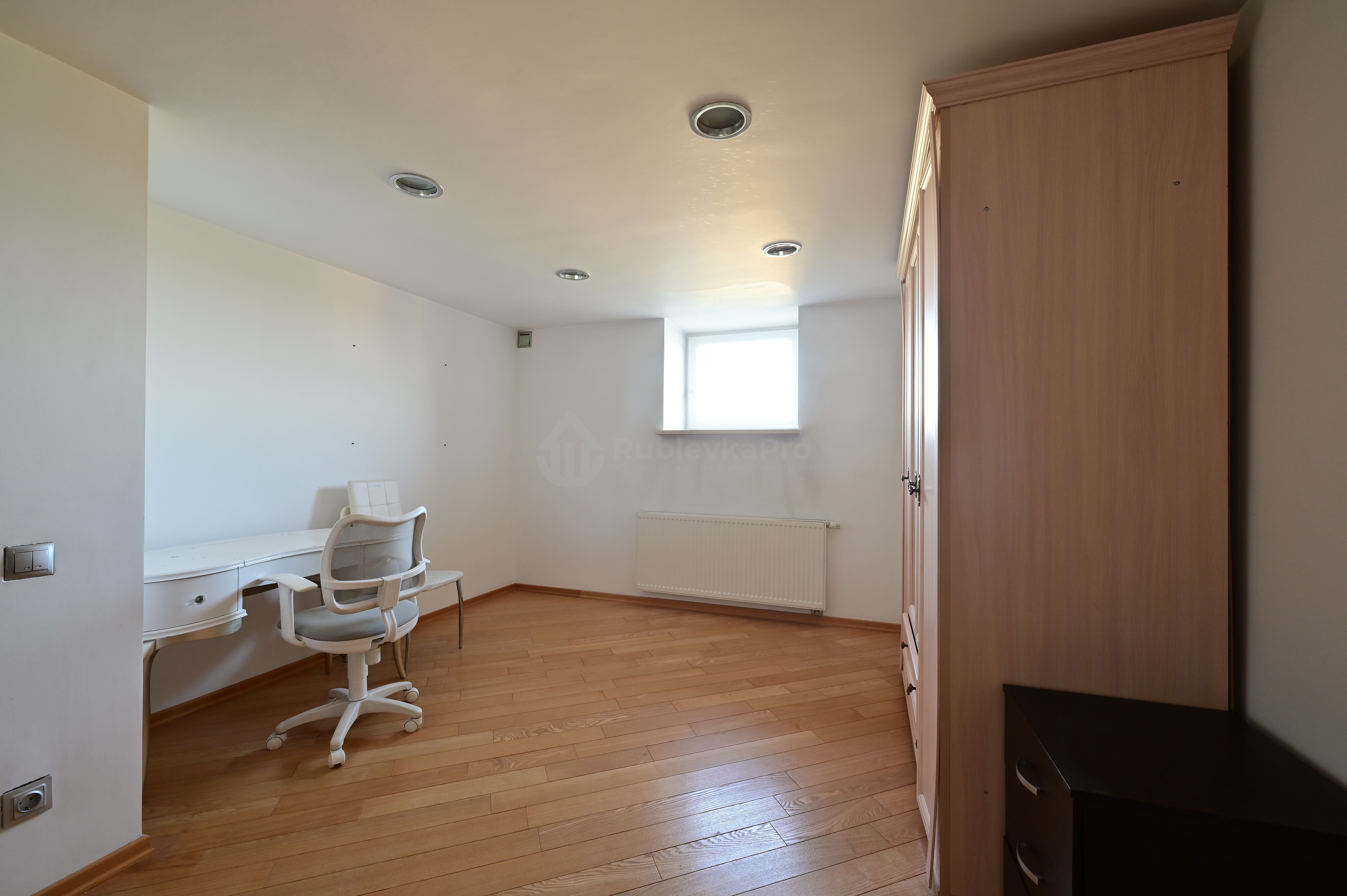 Имеется вся необходимая мебель, техника ведущих европейских брендов Liebherr, Miele, Haier. Все спальни оборудованы мебелью, на окнах итальянские шторы, дом украшают люстры, в санузлах установлена сантехника.