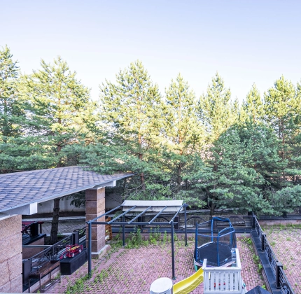 На участке перед таунхаусом установлен детский игровой городок, имеется раздвижная маркиза для отдыха на свежем воздухе, мангал.