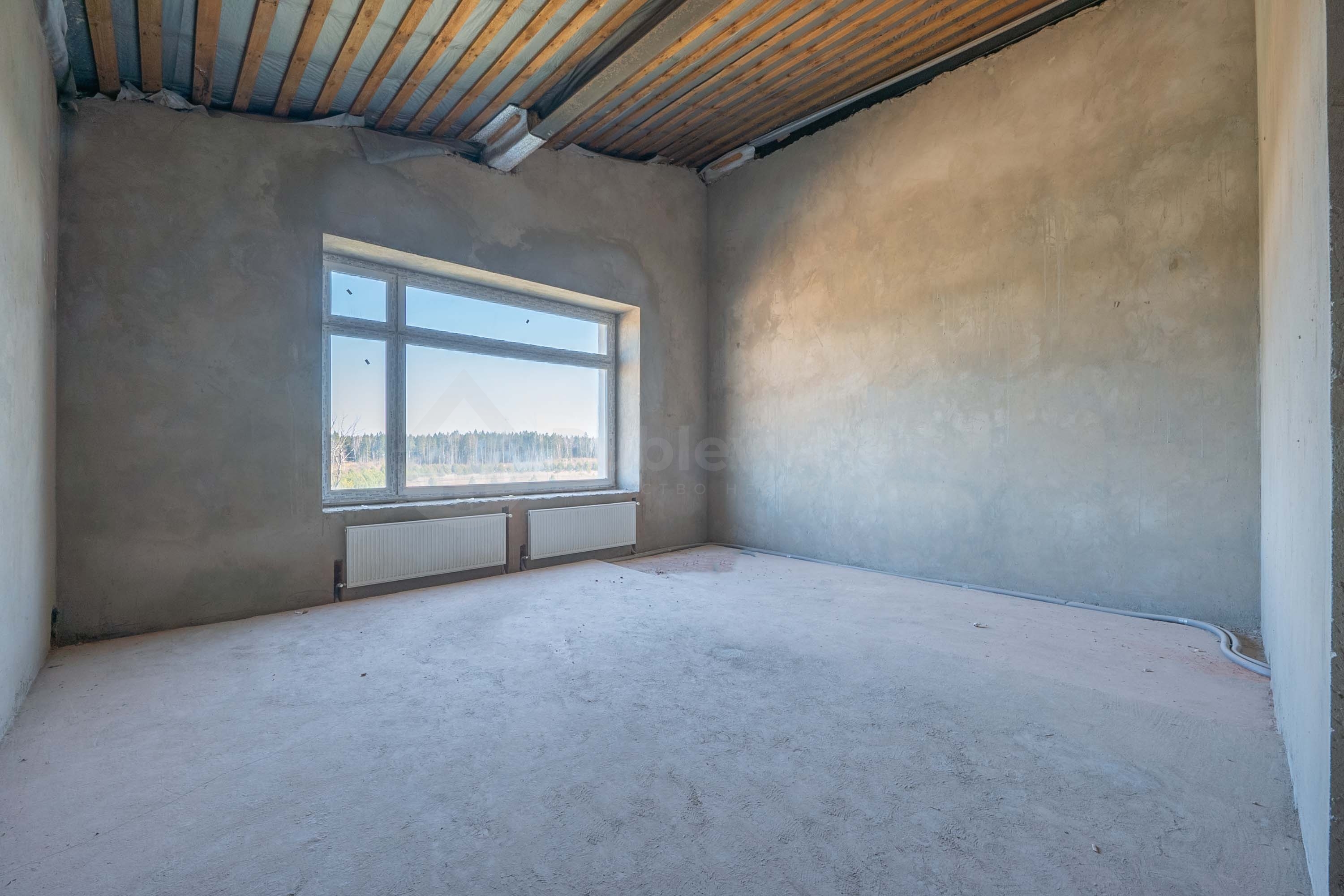 В квартира оштукатурены стены, залита стяжка, разведено отопление, заведена вода и водоотведение, вентиляция, электричество и интернет.