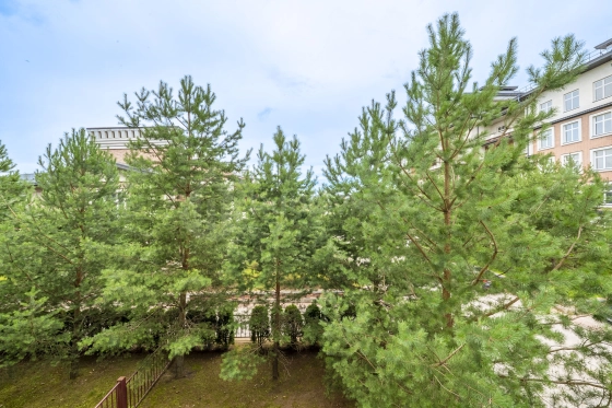 Дом с круглосуточной охраной, всего на 36 квартир,4 жилых этажа, просторный холлы, отделаны натуральными материалами, гостевой санузел, подземный паркинг, кладовые. Перед домом французский парк для неторопливых прогулок, фонтан, детская и спортивная площадка в лесу, лесные озера с беседками для отдыха.