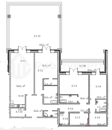4 комнатная квартира 294,7 м2 на 2 этаже с террасой 128 м2. Светлая гостиная-кухня-столовая 67 м2, 3 спальни со своими санузлами, каждая с выходом на террасу или балкон, гардеробная комнатой, постирочная, гостевой санузел, кладовая. Высокие потолки, панорамные окна.