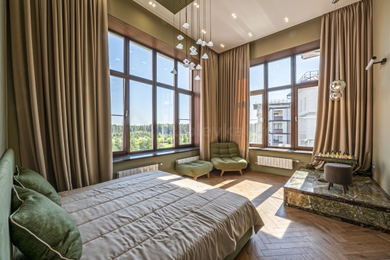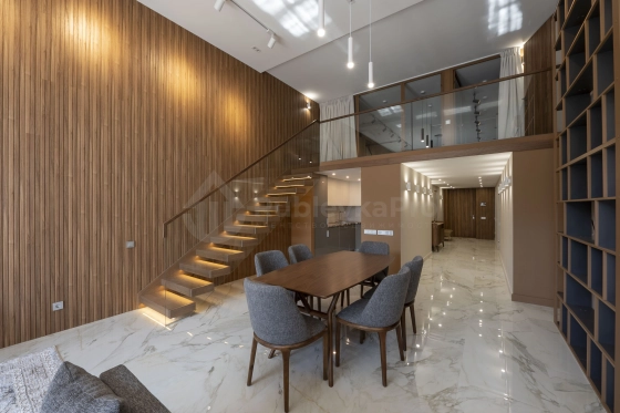 Пространство для жизни: Просторные светлые зоны с высотой потолков более 4,6 метров, авторское светодиодное освещение. Идеальная планировка для большой семьи: гостевая зона с выходом на просторную лоджию, изолированная мастер-спальня с видовыми окнами и гардеробной, две дополнительные спальни с гардеробными комнатами на втором уровне.